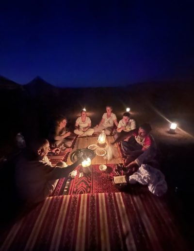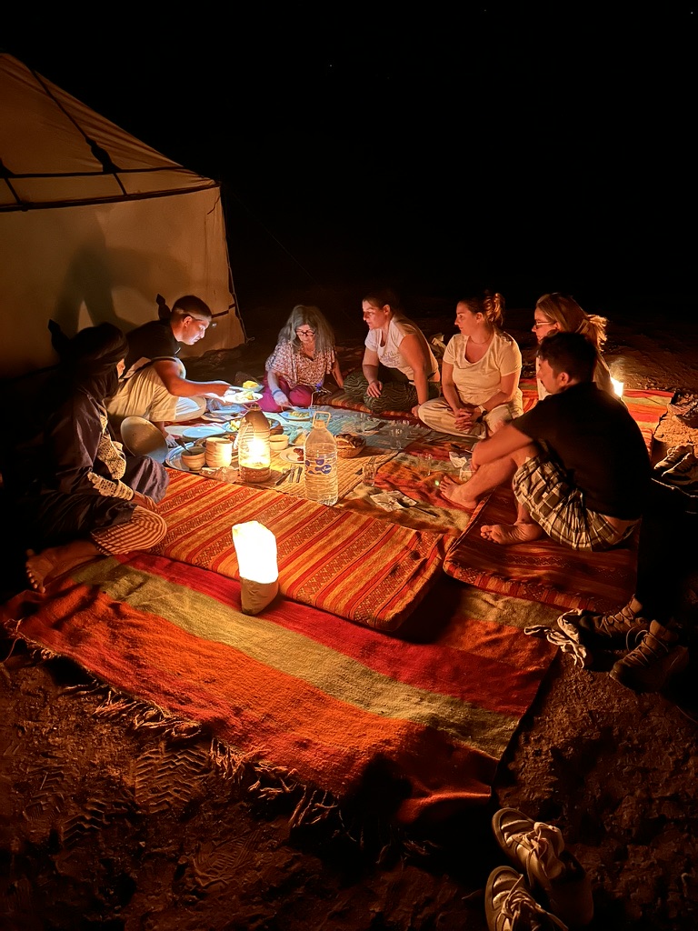 Le séjour dans le désert a été une expérience incroyable, déconnection totale au milieu du désert, un silence rassurant, apaisant, le sable réconfortant, des coucher et lever de soleil magique et des nuits à la belle étoiles incroyable avec un magnifique ciel étoilé et des étoiles filantes!!